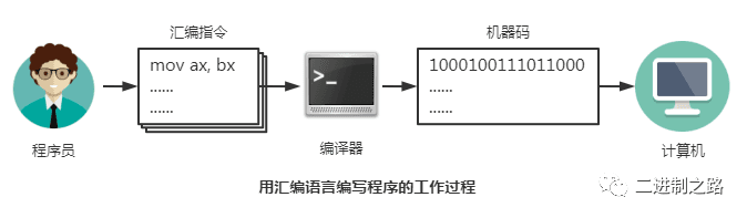 由于计算机只能读懂机器指令,我们编写的汇编代码又如何让计算机执行呢? 这就需要有一个能够将汇编指令转换为机器指令的翻译程序,这个程序称为编译器。