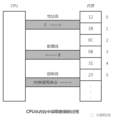 例如,CPU从3号单元中读取数据的过程如下。